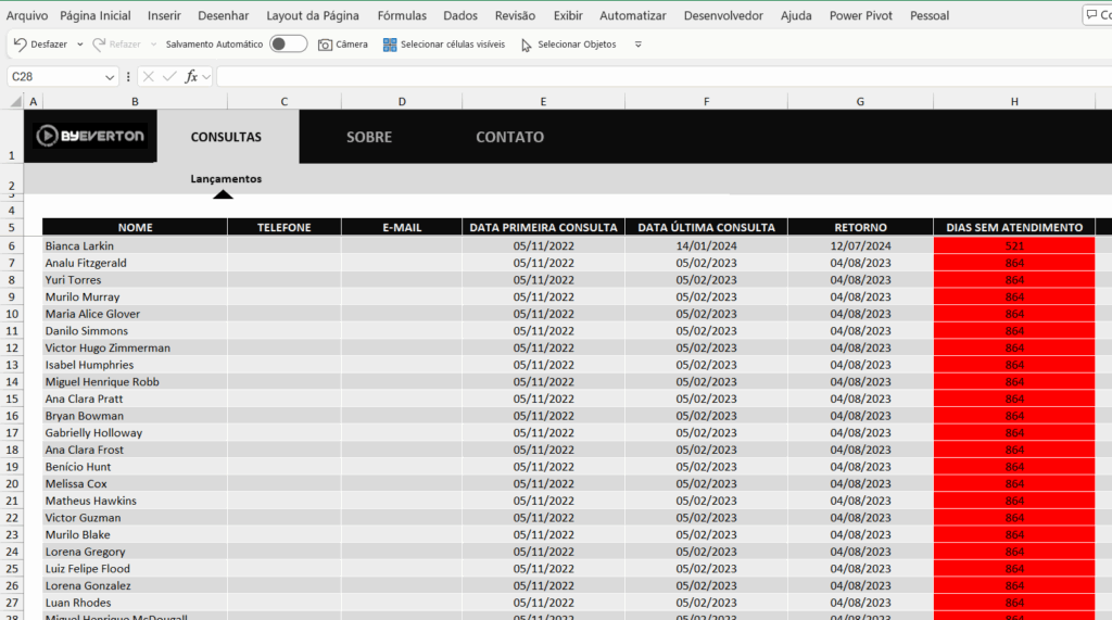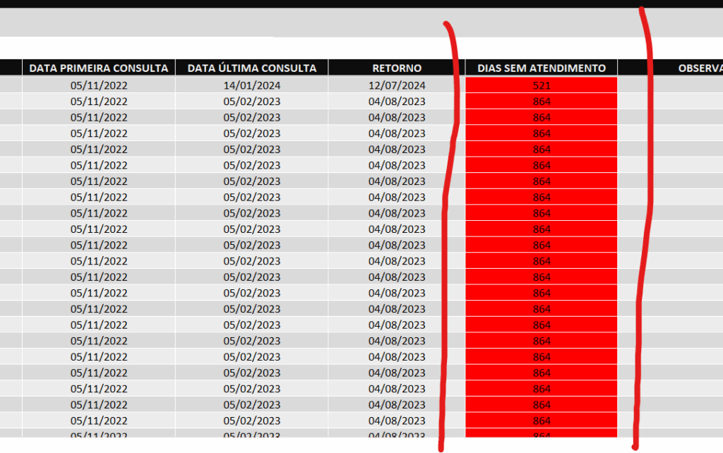 Foi desenvolvida no Microsoft Excel, portanto não deve ser utilizada em outros programas ou aplicativos de planilha. Além disso, a ferramenta calcula automaticamente a quantidade de dias sem atendimento, ou seja, indica há quantos dias o paciente está sem consulta.